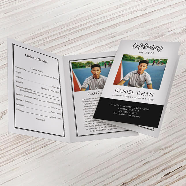 Create your programs with ease with our simple design platform! Or choose design for me and one of our team members will design it for you for a design fee of $80.00. Simply click design for me & checkout! A designer will contact you in 2 hours Mon-Fri 9-5 EST. All proofs are sent and confirmed via email. Connect with our team 1-800-774-4313 today!