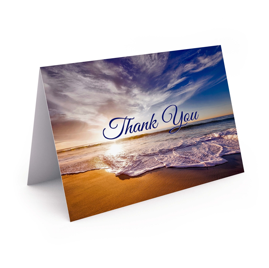Each item in this collection is fully customizable with personal photos, names, and messages, allowing you to create a heartfelt tribute that family and friends will cherish for years to come. The soothing tones and ocean imagery bring a sense of calm and reflection to any memorial service.