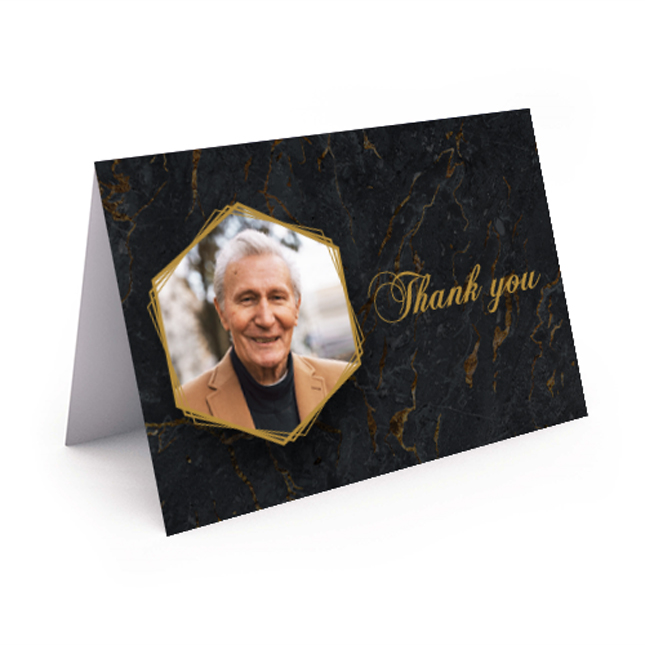 The Black Marble Memorial Package is a bold and elegant tribute, designed to reflect dignity, strength, and timeless remembrance. Accented with luxurious gold script and deep marble textures, this collection includes a personalized program, prayer cards, a poster, and other matching keepsakes. Each piece can be customized with cherished photos, names, and messages to honor the legacy of your loved one.