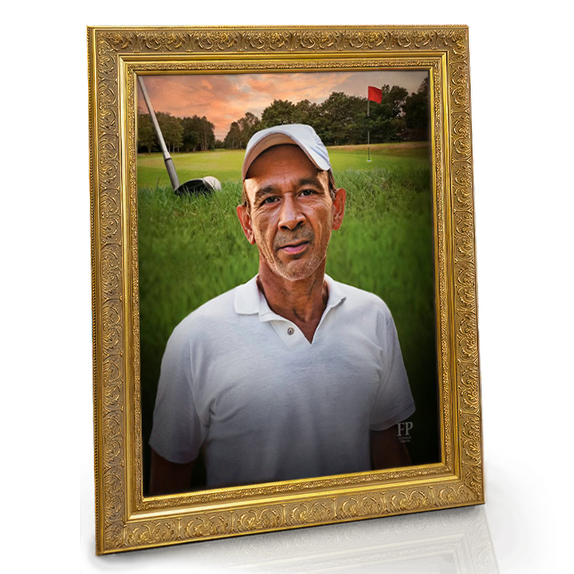 Framed Memorial Portrait - Emerald Fairway Lifescape Background