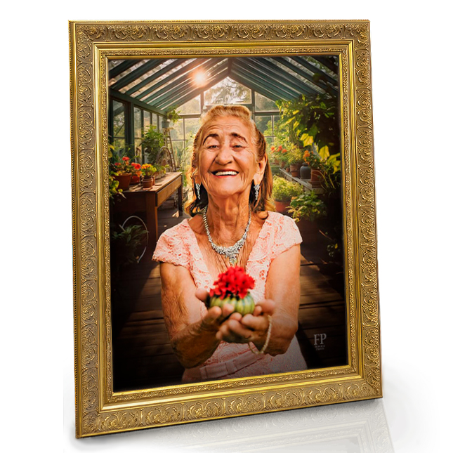 Framed Memorial Portrait - Gardeners Happy Place Lifescape Background
