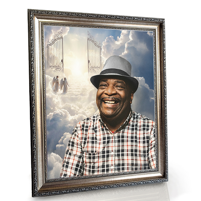 This framed memorial portrait conveys comfort, serenity, and hope, offering family and friends a meaningful way to celebrate a life well lived. The Pearly Gates design evokes the promise of eternal rest and reunion, reminding us that love transcends all boundaries. More than just a portrait, it becomes a lasting tribute that blends spiritual beauty with heartfelt remembrance.